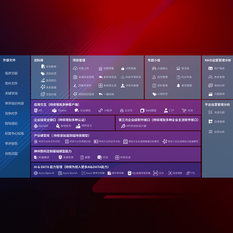 医疗器械产品上市前,,要熟悉严格与繁复评审标准,,,,整理分析监管机构指导文件中的海量信息。。。。企业急需一个智能化解决方案,,提升知识管理效率,,,,提高评审通过率,,,,以提升其市场竞争力。。。