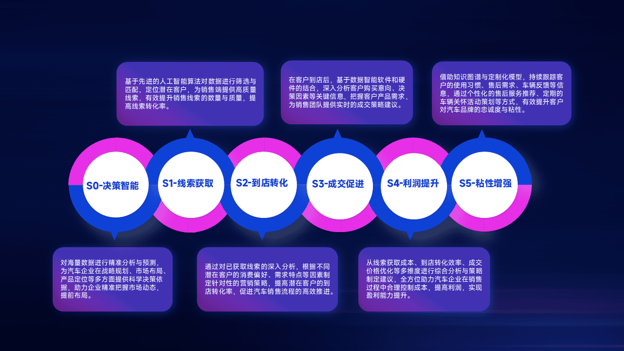 通过拓宽潜在客户来源、、优化线索分配并提高到店转化率,,以增强销售效率。。。。同时,,,利用线索数据不断优化分析模型,,,有效提升转化率,,,扩大营销影响力。。。